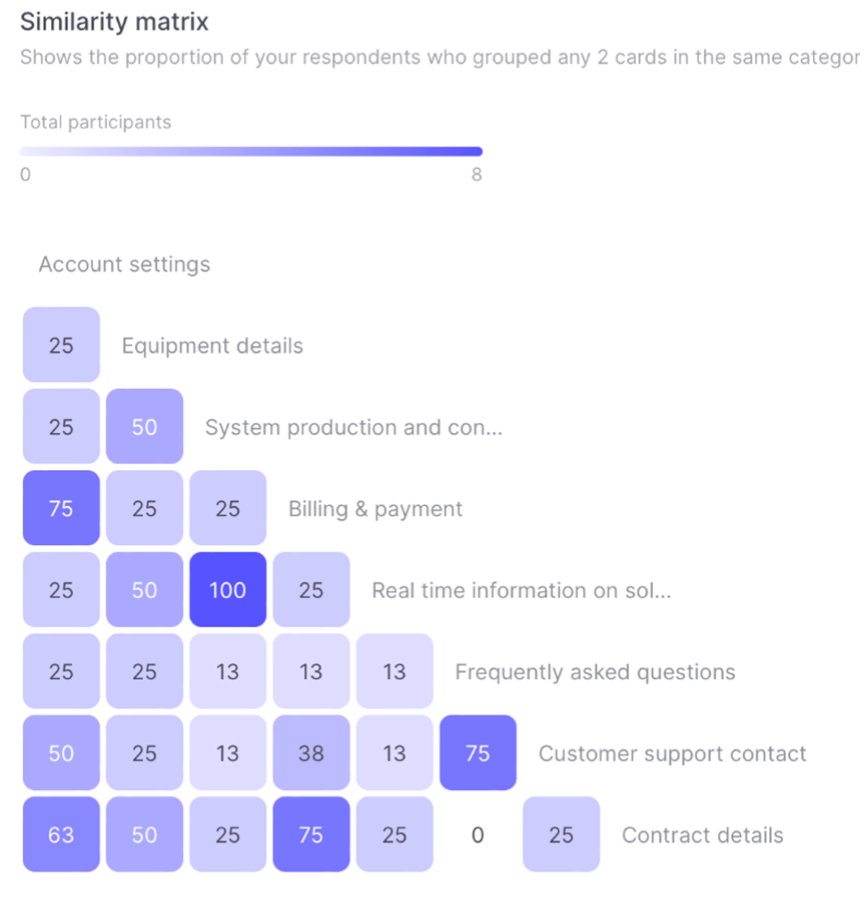 To help optimize information architecture in the app, my team and I conducted a card sort study using UseBerry.