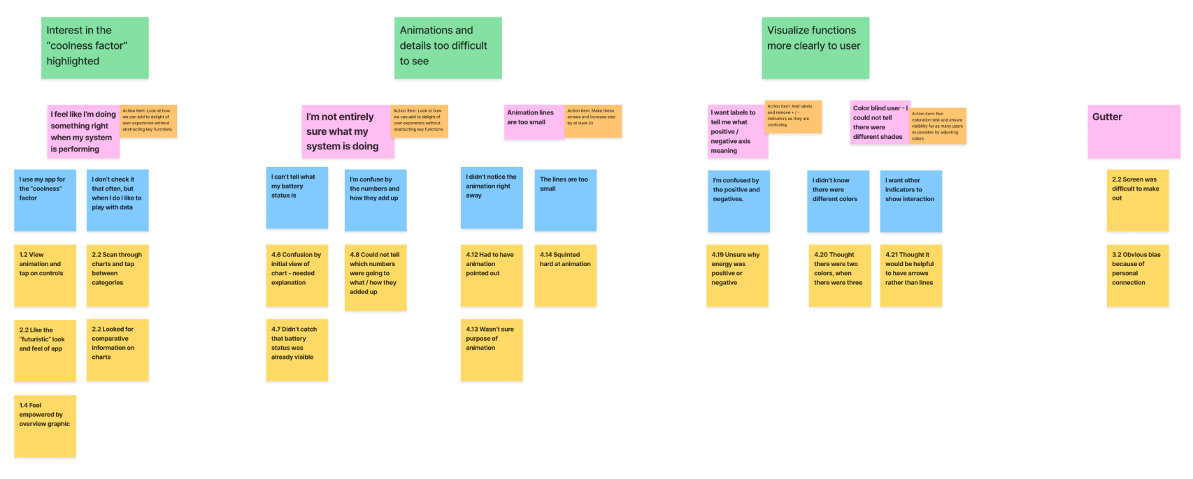 I consolidated the notes from these interviews and organized them by theme to identify patterns and action items.